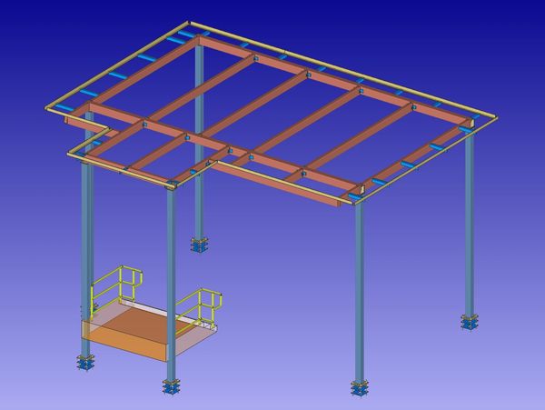 Structural framing for buildings, additions, equipment platforms, Mezzanine, Stairs, landing, railings, roof supports, and roof ladders.